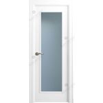 Puerta de interior lacada, sistema de apertura abatible, acabado lacado en color blanco y hoja de 203 x 3.5cm. Modelo Eume 1vl y pertenece a la serie Angle de la marca Madegar